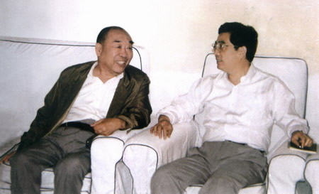 胡錦濤總書記視察劉莊村時與史來賀親切交談