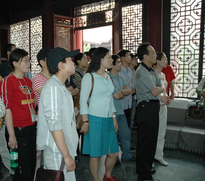 采風團記者正在聽取講解員關于朱載堉
