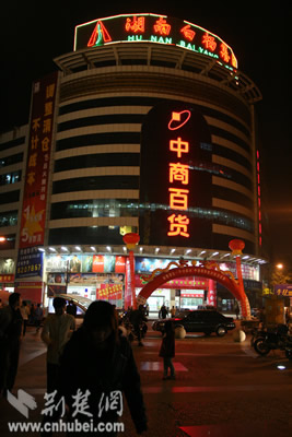 在岳陽(yáng)最繁華的云夢(mèng)路步行街,人流涌動(dòng)、霓虹閃爍,記者看到武商集團(tuán)岳陽(yáng)購(gòu)物中心正在隆重招商。此前,中商百貨已在這里開(kāi)設(shè)了該集團(tuán)的首家省外分店。