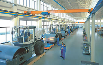 全國知名民營企業(yè)之一的湖南三一重工股份有限公司的壓路機裝配線。