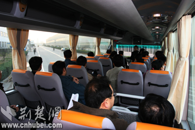 記者們坐在剛下線的宇通客車上親身感受其豪華與舒適。