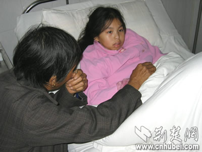 在縣人民醫(yī)院內(nèi)三科9病房里,潔白的病床上躺著一個(gè)面色蒼白、嘴唇發(fā)烏的小姑娘,她就是楊青。在楊青艱難地望過來的時(shí)候,記者的心不禁打了個(gè)顫:大眼睛沒有一絲神采!記者反復(fù)醞釀的問候語哽在喉中。楊青的父母、奶奶、姑媽,卻忍不住悲傷,淚如雨下!皸钋,你痛不痛?”“痛……”楊青張了張嘴,聲音弱得幾乎聽不見。“哪里痛,告訴阿姨好嗎?”“全身都痛!睏钋囝澏吨鲁鲞@4個(gè)字后,不再開口說話。
