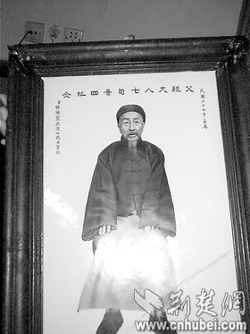 昨日,記者在湖北省社會(huì)科學(xué)院劉女士家中,見(jiàn)到了這塊漢繪瓷板畫(huà)。白色的瓷板鑲嵌在木制相框中,瓷板畫(huà)中間是一幅手工繪就的人像,畫(huà)中老人正襟危坐,含威不露,瓷板上端是“父親大人七旬晉四紀(jì)念”,右批為“民國(guó)二十七年孟春”,左批“男惟明制于漢口抗日軍次”,下端有“漢口榮康瓷業(yè)公司精繪”的小字(如圖)。