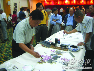 昨日,來自中、日、新、韓四國共26名書畫大家在游覽三峽后,紛紛揮毫潑墨,并與宜昌本土?xí)嫾疫M(jìn)行了交流。據(jù)了解,此次四國書畫家友好聯(lián)盟大型筆會(huì)活動(dòng),是由宜昌市政協(xié)、宜昌點(diǎn)軍區(qū)政府和宜昌環(huán)中房地產(chǎn)開發(fā)有限公司、宜昌環(huán)中旅游開發(fā)有限公司共同舉辦的。荊楚網(wǎng)楚天都市報(bào)記者梅曉蕓攝