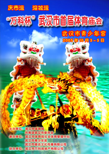 “萬科杯”武漢市首屆體育廟會將以“慶市運、迎城運,弘揚體育傳統(tǒng),豐富市民生活”為主題,秉承“體育精華表演為主,市民廣泛參與互動”的原則,分為水上表演,馬文化表演,武術(shù)絕技表演,健康家庭才藝展示,民間時尚體育表演,趣味體育互動游戲,體育產(chǎn)品、服務(wù)、地產(chǎn)、家裝及其它展示等七大活動板塊。廟會采用廣大民眾喜聞樂見的互動開放形式,將邀請部分國際棋牌大師、武林宗師、知名運動員和教練出席表演和互動活動,并安排了武漢市時尚體育極限運動表演、體育知識問答、體育舞蹈等三十多項活動。整個體育廟會活動集知識性、競技性、參與性、趣味性于一體。此外,由武漢市體育局提供的國民體質(zhì)測試車,將免費為市民進(jìn)行體質(zhì)測試和運動咨詢。