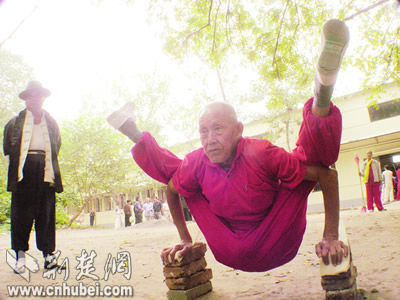 昨日,由武漢市體育局主辦的首屆體育廟會在武漢市青少年宮開幕。各種中國傳統(tǒng)體育項(xiàng)目紛紛登場初賽、表演。尤其是一些絕技絕活,如心房頂戟、后腦斷磚、朝天蹬、九節(jié)神鞭等,驚險刺激,令觀者嘖嘖稱奇。記者劉大家、胡彩麗攝影報道