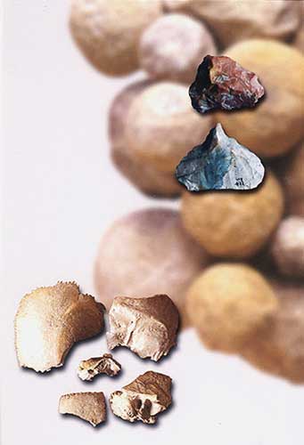 石刮削器:工具(上,長(zhǎng)2.9厘米)