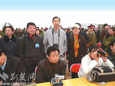 ●北京時(shí)間9時(shí)06分,神舟六號(hào)飛離酒泉衛(wèi)星發(fā)射中心觀禮臺(tái)人員視野。湖北日?qǐng)?bào)記者張小燕連線發(fā)射現(xiàn)場———嘉魚縣委宣傳部部長葛婷