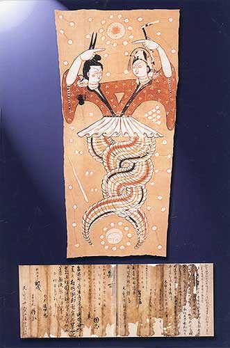 伏羲女媧絹畫;(上,長(zhǎng)184厘米)