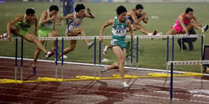 十運會田徑比賽最精彩的大戲10月20日在奧體中心田徑場進行,奧運冠軍劉翔在萬眾矚目之中,以13秒10的好成績毫無懸念地奪得冠軍,這是他在全運會中的第二次奪冠,也是他今年在國內(nèi)比賽中的第二好成績。(圖片來自新浪體育)