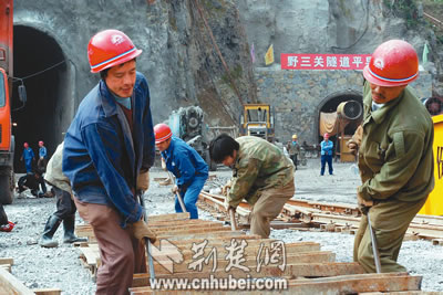 這條鐵路橋梁和隧道多,全路的橋隧累計(jì)長度占全線總長的73.69%,其中隧道多達(dá)121座,占全線長度的59.54%。隧道多,隧道長,隧道之中還要建橋梁,這在我國的鐵路建設(shè)史上也是罕見的。其中還有一些車站也建在隧道里,隧道施工成為工程建設(shè)最重要的環(huán)節(jié)。