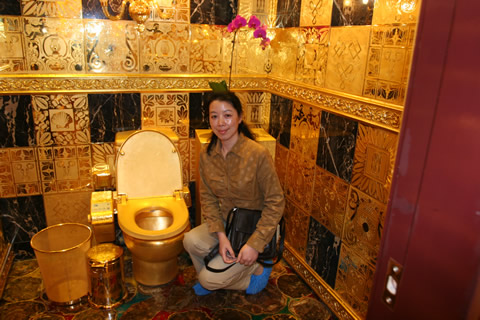 在2002年版的《吉尼斯世界紀錄》上有著這樣一條記錄:“用錢沖洗――世界上最昂貴的衛(wèi)生間由珠寶商林世榮制造,在他的中國香港商店售價240萬英鎊。它完全由金子和昂貴的珠寶制成。抽水馬桶、洗臉臺、刷子、衛(wèi)生紙盒、鏡框、墻上架設的吊燈、墻上的瓷磚和門全部都由24K黃金構成! “這里有一點寫得不對,我的金廁所決不出售,我還要用它來專門注冊一個品牌,成為我們企業(yè)的象征!绷质罉s在接受記者采訪時,詳細地解釋了自己對“金廁所”的感情。 現(xiàn)任香港恒豐金業(yè)科技集團主席的林世榮說:“整個金廁所都是由我親自設計、監(jiān)督制造的,我甚至在工地呆過整整三天三夜沒有出來,可以說是傾注了極大的心血。很多人可能不了解我為什么會用這么多黃金來建造一個廁所,其實我不是為了炫耀,也不是喜歡奢侈浪費,我是在完成一個心愿。把土變成金了不起,把金變成土同樣了不起!