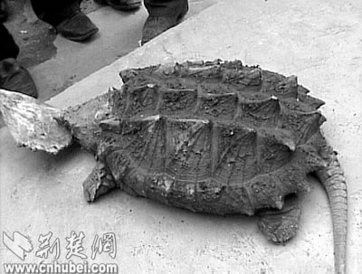 荊楚網(wǎng)消息(湖北日報)通訊員唐科達(dá)報道:22日,京山縣雁門口鎮(zhèn)阮溝村村民魏作華在清理魚塘?xí)r驚奇發(fā)現(xiàn)一只上面長滿犄角的大鱉。這只大鱉牙齒鋒利,呈灰綠色,體重8.4公斤。