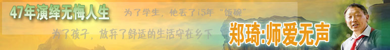 ·鄭琦:為了太陽底下最美好的事業(yè) 從當(dāng)教師的那天起,我就深深地愛上了這個(gè)職業(yè),工作的時(shí)間越長(zhǎng),愛得越深。 ·楊靜:長(zhǎng)大后我就成了你 我毫不猶豫地填報(bào)了當(dāng)陽師范音樂專業(yè)——因?yàn)槲蚁胱鲆粋(gè)像鄭老師那樣的老師! ·周志富:鄭老師是我最親的人 有句話藏在我的心里整整8年了,今天,我要當(dāng)著這么多人的面叫鄭老師一聲:爸爸! ·阮建平:鄭老師是我人生的引路人 鄭老師所做的一切,不僅是對(duì)學(xué)生的今天負(fù)責(zé),更是對(duì)學(xué)生的未來負(fù)責(zé)。 ·夏雨:一生為了孩子 鄭老師的不同凡響之處就在于,他把每個(gè)人都能做到的小事,堅(jiān)持做了47年,做成了許多人都難以做到的大事。