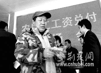 2日,湖南籍在鐘祥市境內(nèi)某高速公路務(wù)工的農(nóng)民工在鐘祥市勞動(dòng)監(jiān)察大隊(duì)領(lǐng)到了他們的工資。近年來(lái),鐘祥市勞動(dòng)和社會(huì)保障局著重建立和完善農(nóng)民工權(quán)益保障制度,經(jīng)常在全市開展勞動(dòng)用工專項(xiàng)檢查,加大對(duì)農(nóng)民工工資支付監(jiān)控力度,從源頭上有效地控制了拖欠農(nóng)民工工資問(wèn)題。(通訊員趙云福鐘國(guó)慶攝)