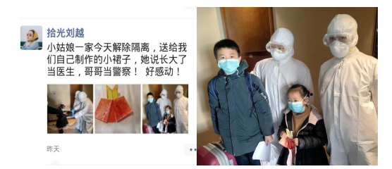 隔離解除,依依惜別,萌娃兄妹把精心制作的手工,送給日夜相伴的“拾光劉越”等醫(yī)護(hù)人員?!伴L(zhǎng)大也要當(dāng)醫(yī)生、當(dāng)警察。”稚氣的話語,讓“拾光”感動(dòng)。