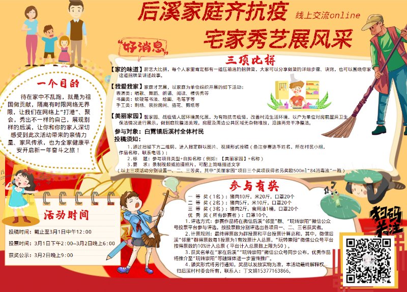 因為,該村正在舉辦“后溪家庭齊抗疫 宅家秀藝展風采”活動!