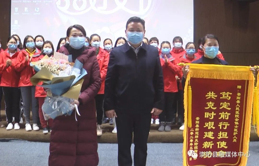 活動中,縣委副書記、縣長鄭俊華向云南援崇醫(yī)療隊贈授“柔肩擔(dān)重任·巾幗顯擔(dān)當(dāng)”感謝錦旗,縣委副書記、縣委政法委書記程冰野為崇陽縣人民醫(yī)院授予“巾幗建功集體”榮譽(yù)錦旗,同時,向每一位云南援崇醫(yī)療隊女醫(yī)護(hù)人員和奮戰(zhàn)在戰(zhàn)“疫”最前線的女醫(yī)生、女護(hù)士代表送上了鮮花和節(jié)日禮物。