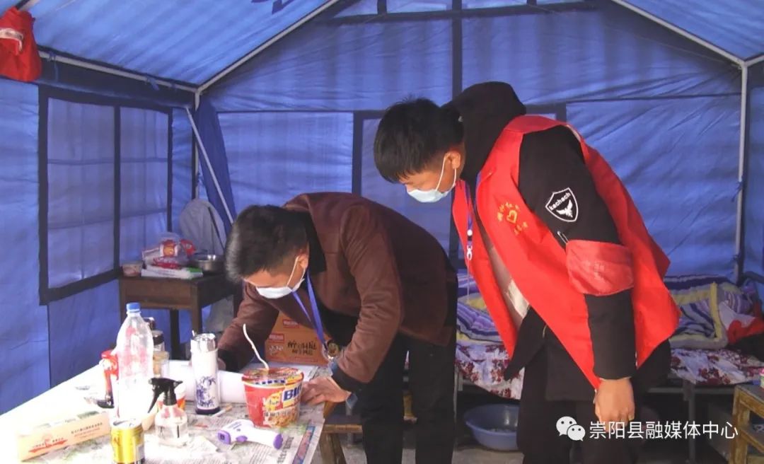 據(jù)了解,殷帥值守的是馬橋村7組的卡點(diǎn),這個(gè)卡點(diǎn)與白霓鎮(zhèn)交界,人口流動(dòng)頻繁。為了守好卡點(diǎn),殷帥每天24小時(shí)值守在這里,剛開始值守點(diǎn)沒有帳篷,只有一個(gè)簡(jiǎn)單的雨棚和一個(gè)小床,惡劣的環(huán)境加上寒冷的天氣,讓殷帥沒少吃苦頭。由于晚上光線暗、氣溫低,總有村民想趁機(jī)偷偷過卡,“牛脾氣”的殷帥干脆抱床被子,就坐在外面“死”守,硬是沒放過一個(gè)人。