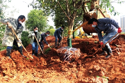 3月11日,記者在城區(qū)泉都大道拍攝的綠化造林現(xiàn)場(chǎng)。