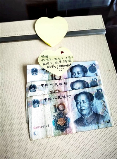 來自曲靖市中醫(yī)醫(yī)院的一位隊員用了一條毛巾,留下30元錢,并用便利貼寫著:“阿姨,我用了一條毛巾,不可以再用了,這是賠償?shù)腻X!”