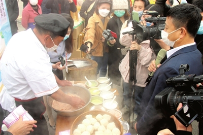 4月3日,在嘉魚特產贈送云南醫(yī)療隊暨嘉魚農產品原產地直播活動現(xiàn)場,嘉安集團工人制作簰洲圓子的過程受到熱烈追捧。簰洲圓子現(xiàn)已成為展示嘉魚魚文化的一張文化名片,成為傳承文化遺產、發(fā)展文化產業(yè)、建設美麗鄉(xiāng)村的一個文化品牌。此外,簰洲圓子還登上了央視紀錄片《舌尖上的中國》,憑著其傳統(tǒng)的技藝及綠色健康的特點,享譽神州大地。