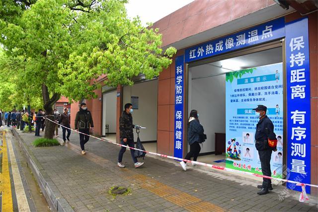 演練圍繞學(xué)校開學(xué)后,師生進入校園“如何進行體溫檢測”、“發(fā)現(xiàn)發(fā)熱學(xué)生如何進行應(yīng)急處置”展開。參與演練的各校師生在值班教師的指揮下,保持良好隊形和安全間距,分批次有序通過紅外熱成像測溫處進入校園。
