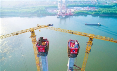 4月29日10點08分,隨著最后一方混凝土澆筑完成,赤壁長江大橋主塔全部封頂。盡管疫情延誤了兩個月的工期,但中鐵大橋局赤壁長江大橋項目部一手抓防疫一手抓復工,僅比疫情前原計劃時間延遲一個月完成主塔封頂,為大橋如期建成通車贏得寶貴時間。