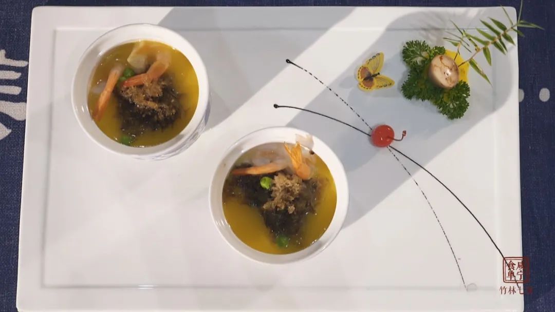 本菜以竹燕窩為主食材,蒸熟后配以濃稠羹汁。菜名從嵇康通曉音律,善琴,以絲竹之才聞名后世而得。