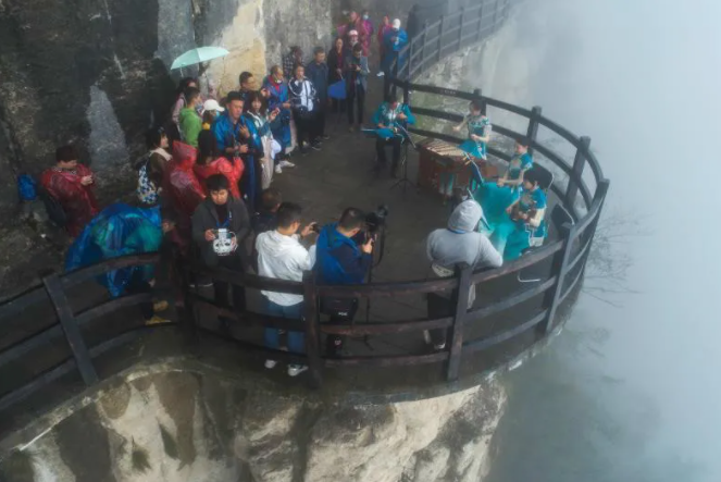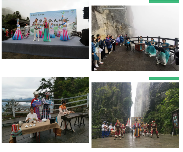 恩施大峽谷七星寨景區(qū)索道上站觀景平臺上,隨著恩施市文旅形象歌曲《情漫恩施》的精彩呈現(xiàn),精品演藝和非遺進景區(qū)系列活動正式拉開帷幕。男聲獨唱《大峽谷有哈數(shù)》、儺戲表演《開葷敬酒》、歌舞《我在恩施等著你》等精品演出節(jié)目向游客送上一場精彩的文化藝術盛宴,同時獻上一份特別的中秋國慶雙節(jié)禮物。