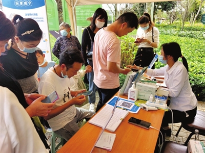 與此同時(shí),在官橋八組田野鄉(xiāng)村公園開心農(nóng)場景區(qū)門前,筆者看到檢票處排起了長隊(duì),游客們正有序地核銷預(yù)約二維碼、測溫、登記完后陸續(xù)進(jìn)入景區(qū)。景區(qū)內(nèi)隨處可見拍照合影、嬉戲玩耍的身影,洋溢著一派歡聲笑語的熱鬧景象。