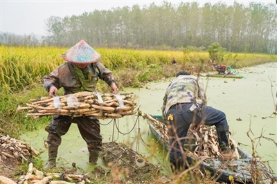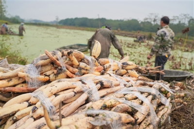 10月26日,嘉魚縣陸溪鎮(zhèn)界石村鴨兒湖養(yǎng)殖專業(yè)合作社里,負(fù)責(zé)人龔木前正和工人們一起忙著挖藕、稱重、清洗、包裝。龔木前是一名退役軍人,2009年,龔木前從部隊(duì)轉(zhuǎn)業(yè)后回鄉(xiāng)創(chuàng)業(yè),承包了村里50畝荒湖種野藕。經(jīng)過幾年時間的發(fā)展,他成立了農(nóng)業(yè)合作社,把藕塘面積擴(kuò)大到300多畝。近些年,通過他的努力,他家的野藕通過電商遠(yuǎn)銷全國各地,高峰期時,每天可以接到200余張訂單。 通訊員 耿海軍 杜瑞 攝