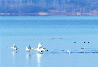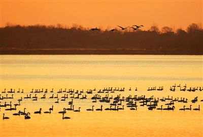 近年來,隨著退垸還湖和禁捕政策的實施,濕地生態(tài)環(huán)境持續(xù)改善,西涼湖水質(zhì)上升為二類后,為天鵝越冬創(chuàng)造了良好的棲息之地。