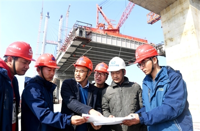 “今年春節(jié)因為趕工期和疫情防控,我還是選擇在工地過年?!?月13日,大年初二,記者走進赤壁長江公路大橋建設現(xiàn)場,30出頭的尹振君正和同事研究合龍技術(shù)方案,他已經(jīng)連續(xù)4年沒回家過年了。他們身后,大橋合龍僅剩最后的40米。