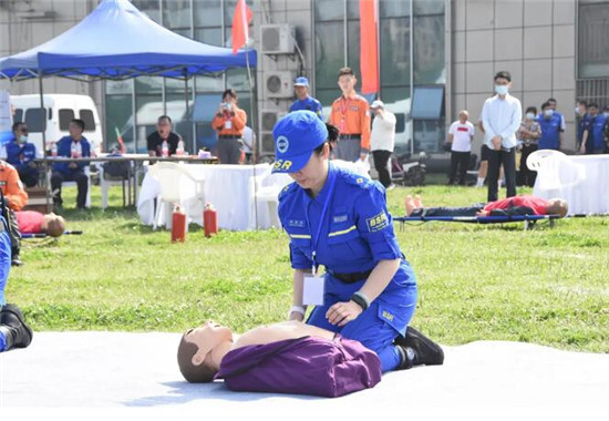 當(dāng)天,江岸區(qū)消防救援大隊進行了無人機應(yīng)急救援技能展示,武漢藍(lán)天救援隊展示了心肺復(fù)蘇急救手法。