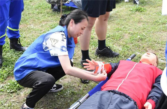 藍(lán)天救援隊員展示心肺復(fù)蘇技術(shù)