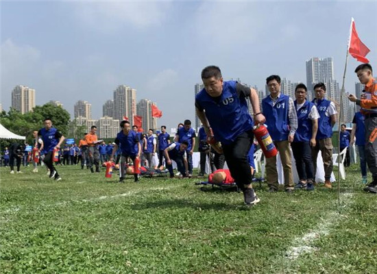 消防救援隊員進入現(xiàn)場“滅火”江岸區(qū)各街道及百步亭社區(qū)17支代表隊,參加了應(yīng)急常識答題、疫情防控“一穿三戴”、手提滅火器往返接力跑、模擬緊急救治傷員等應(yīng)急技能比武。
