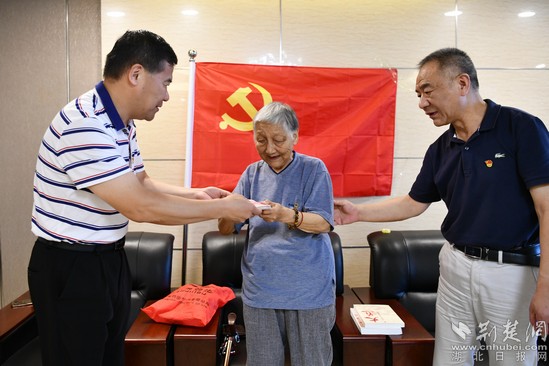 荊楚網(wǎng)(湖北日報網(wǎng))訊(通訊員劉建平、吳林艷)6月18日下午,咸寧市通城縣縣醫(yī)院黨委書記蔡天晶代表醫(yī)院黨委鄭重接受有著65年黨齡的老黨員張美芳親手交納的1萬元“特殊黨費”。