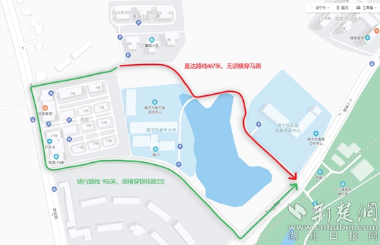 這條路位于咸寧市城區(qū),是一條連接銀桂路和十六潭路的城市支路,于2021年3月建成通車,被命名為鏡湖路?!剁R湖路微循環(huán)工程公示牌》顯示,“本次規(guī)劃道路起點(diǎn)位于銀桂路,終點(diǎn)位于鏡湖路,規(guī)劃全長(zhǎng)358.46米,設(shè)計(jì)車速20千米/小時(shí),為城市支路。該路建成增加了馨園小區(qū)357戶居民車流集散通道,車輛進(jìn)入十六潭路的距離大大縮小,極大方面了居民出行;同時(shí)分流了繞行銀桂路車流,有效緩解了銀桂路交通壓力。