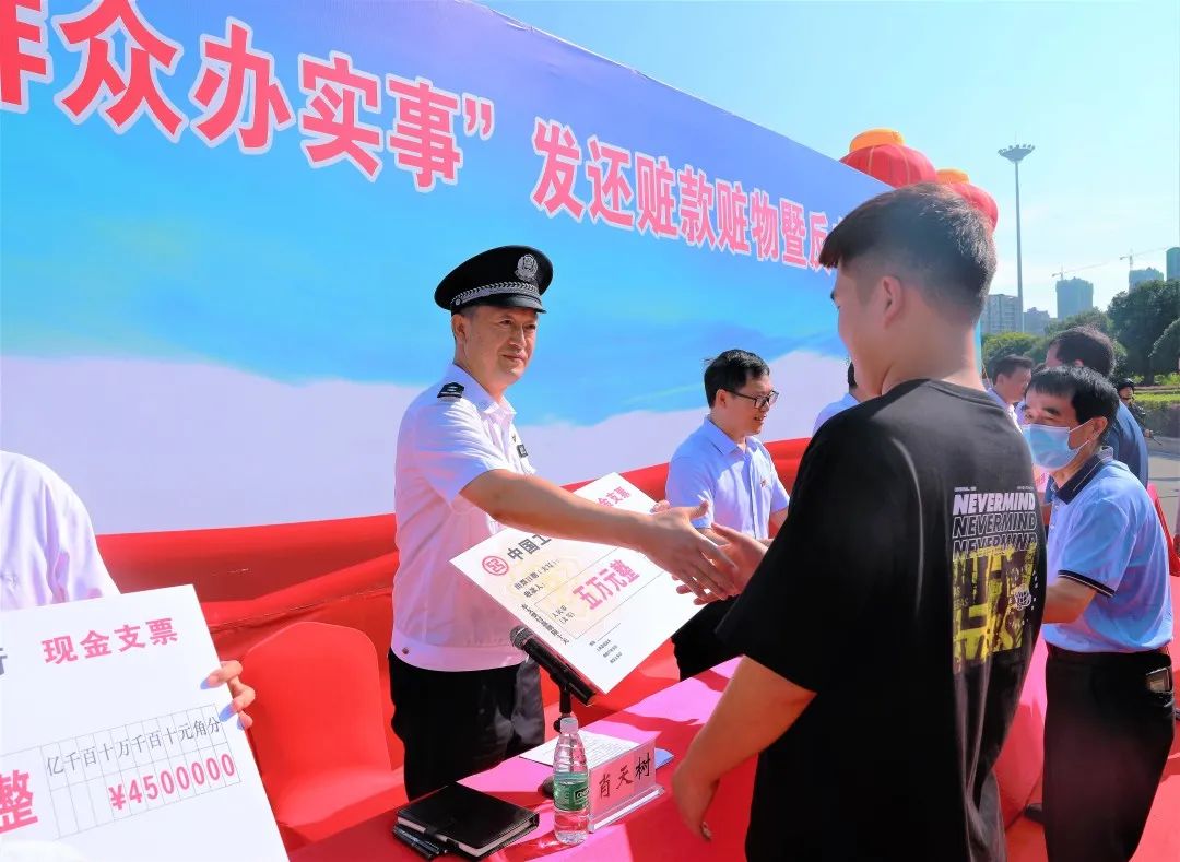 通過此次退贓大會,進一步向全市人民展示了咸寧公安扎實開展“我為群眾辦實事”活動成效,以及嚴打嚴防各類犯罪,致力“打防管控宣”,堅決斬斷伸向群眾錢袋子的黑手。