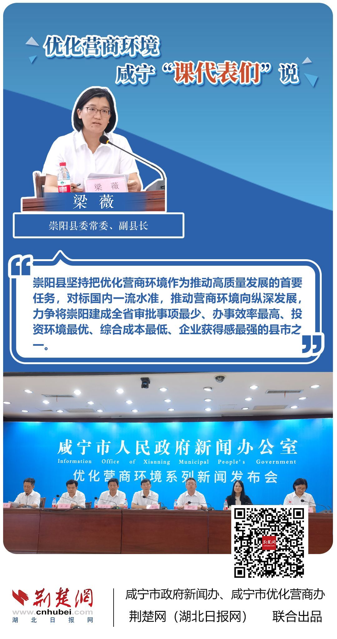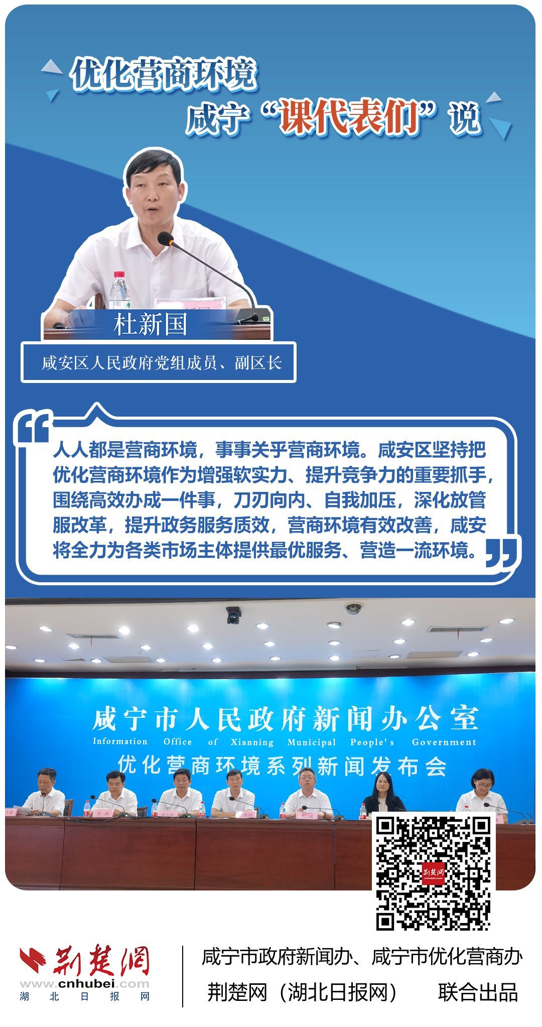 荊楚網(wǎng)(湖北日?qǐng)?bào)網(wǎng))訊(記者 田城 通訊員 孫方成 張永紅)跨省通辦、“零干擾環(huán)境”、最簡流程優(yōu)服務(wù)、深化“放管服”改革、整肅行風(fēng)政風(fēng)……7月20日下午,咸寧市召開優(yōu)化營商環(huán)境新聞發(fā)布會(huì)。會(huì)上,咸安區(qū)、嘉魚縣、赤壁市、通城縣、崇陽縣、通山縣6個(gè)縣市區(qū)優(yōu)化營商環(huán)境發(fā)言人亮相,全面介紹當(dāng)?shù)貎?yōu)化營商環(huán)境有關(guān)情況,持續(xù)推進(jìn)咸寧市營商環(huán)境朝著更優(yōu)、更好方向前進(jìn)。