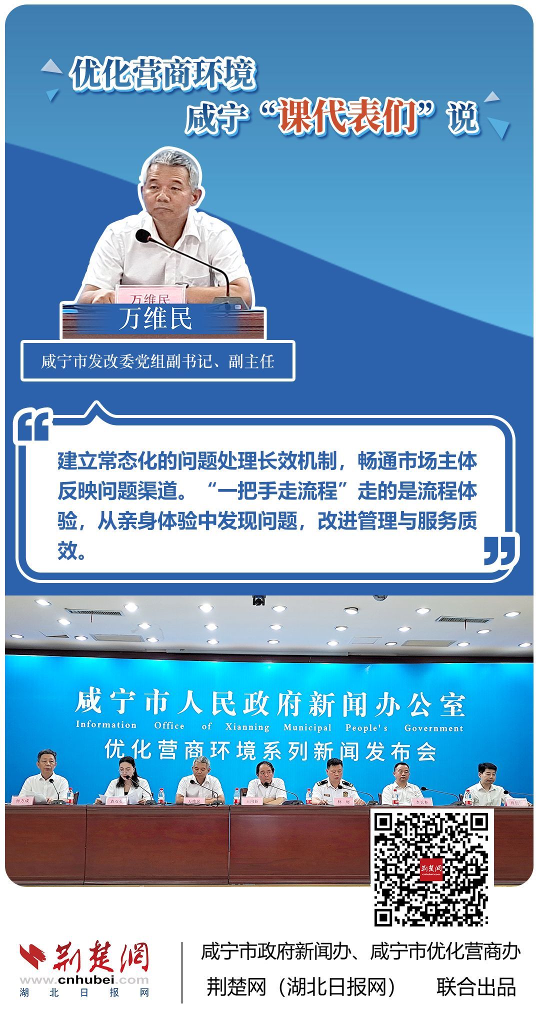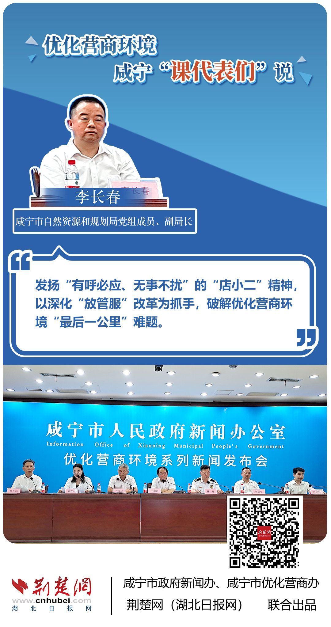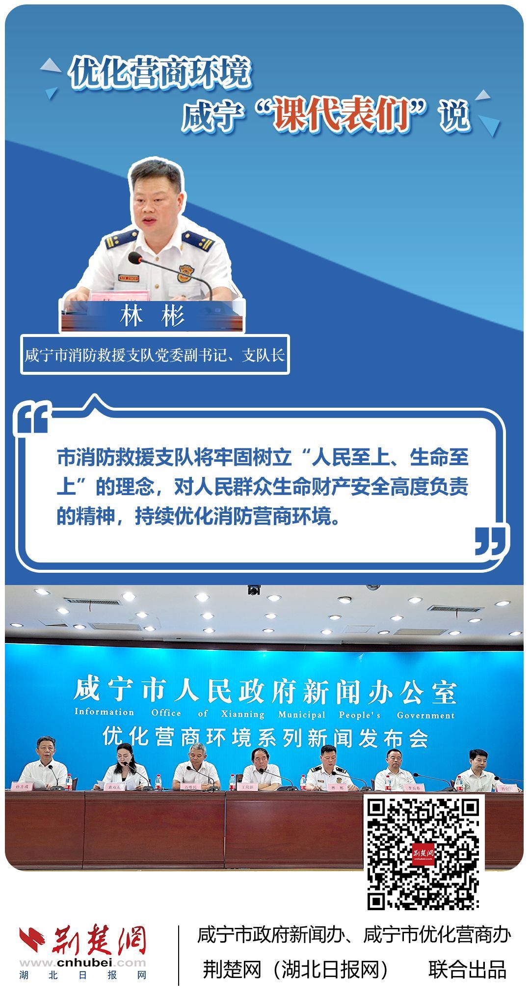 荊楚網(wǎng)(湖北日?qǐng)?bào)網(wǎng))訊(記者 王焱堯 田城 呂鑒蕾 通訊員 張永紅 程蒙)打造寬松便捷的準(zhǔn)入環(huán)境,將服務(wù)部門(mén)“一把手”推到窗口,實(shí)行消防行政許可辦理“雙軌制”,加大誠(chéng)信體系建設(shè)和知識(shí)產(chǎn)權(quán)保護(hù)力度……7月20日,咸寧市直單位9名優(yōu)化營(yíng)商環(huán)境發(fā)言人亮相新聞發(fā)布會(huì),圍繞“優(yōu)化營(yíng)商環(huán)境”這一主題,談做法、論經(jīng)驗(yàn)、說(shuō)打算。