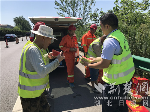 據(jù)悉,為確保高溫天氣的交通安全,武黃運(yùn)營公司不僅為司乘帶來消暑飲品,還及時對高速路路面上的坑槽病害進(jìn)行排查、修復(fù)路面交安設(shè)施、維護(hù)道路的清潔,保障高速公路的安全暢通。