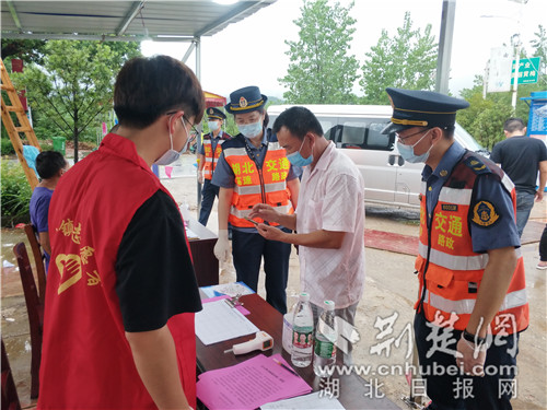 “大娘,請(qǐng)戴好口罩,我來(lái)幫您測(cè)下體溫。現(xiàn)在疫情有擴(kuò)散趨勢(shì),千萬(wàn)要做好防護(hù)。”8月6日,漢十支隊(duì)路政員陳紅濤一邊向居民宣傳防疫知識(shí),一邊熟練地替大家測(cè)量體溫。