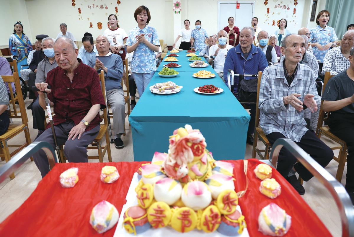 “父親是兒那登天的梯,父親是那拉車的牛……”6月15日,在父親節(jié)來(lái)臨之際,在太和和眾養(yǎng)老中心二樓,伴隨著歌曲《父親》的節(jié)奏,護(hù)理人員將入住的父親們推上舞臺(tái),向他們致敬。這是太和和眾養(yǎng)老中心精心策劃的“感恩父親節(jié),讓愛更長(zhǎng)久”詩(shī)歌朗誦活動(dòng)。當(dāng)天,該中心還給老人們過(guò)集體生日,為老人送上一份特別的關(guān)愛與溫暖?!鑫?記者 張貞林 圖/記者 張啟國(guó)