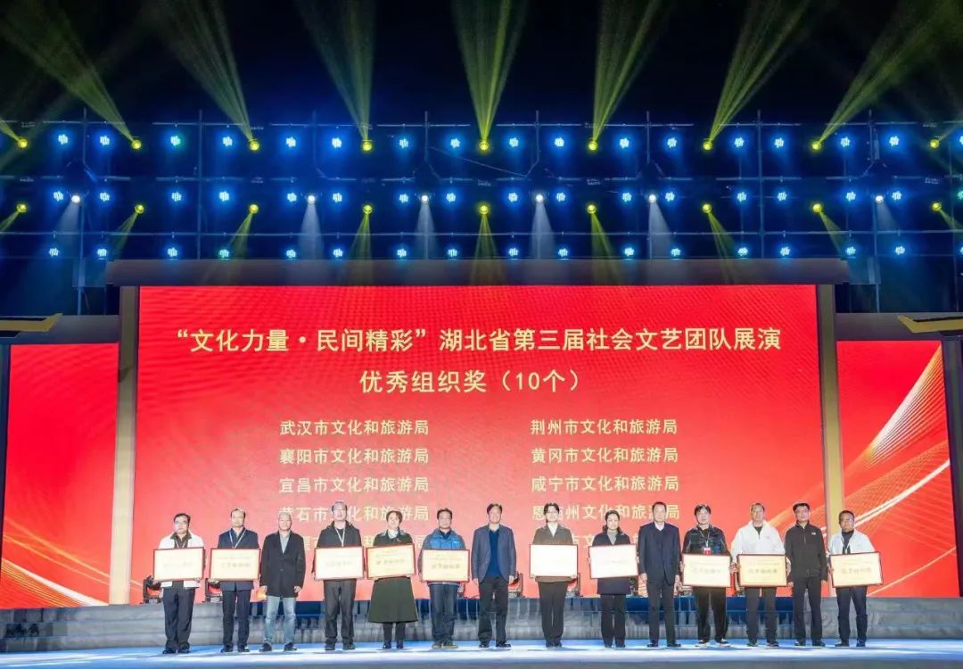 ▲頒發(fā)“文化力量·民間精彩”湖北省第三屆社會(huì)文藝團(tuán)隊(duì)展演優(yōu)秀組織獎(jiǎng)