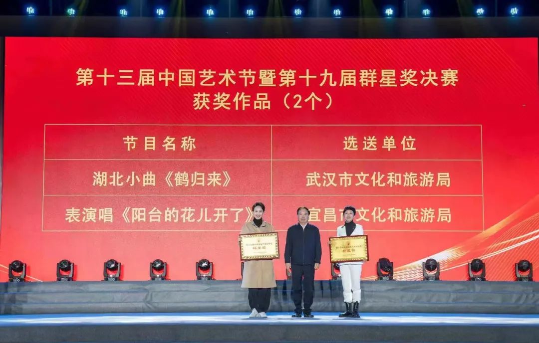 ▲頒發(fā)第十三屆中國(guó)藝術(shù)節(jié)暨第十九屆群星獎(jiǎng)決賽我省獲獎(jiǎng)作品獎(jiǎng)牌