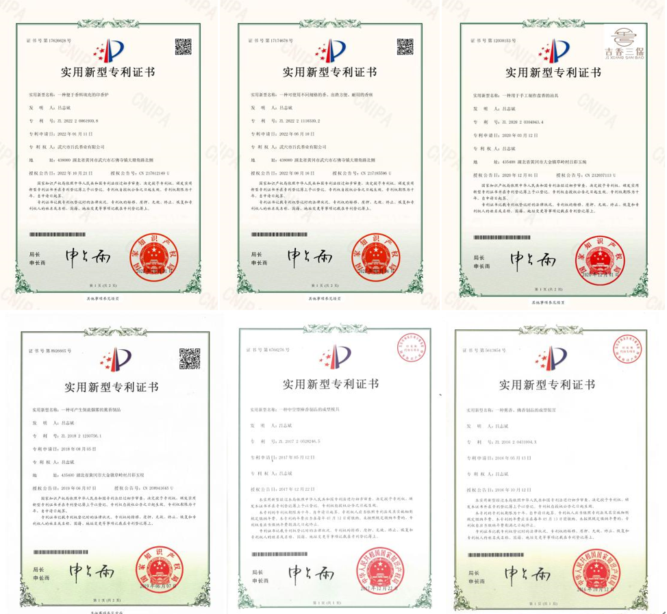 圖為呂志斌在制香領域榮獲多項國家發(fā)明專利