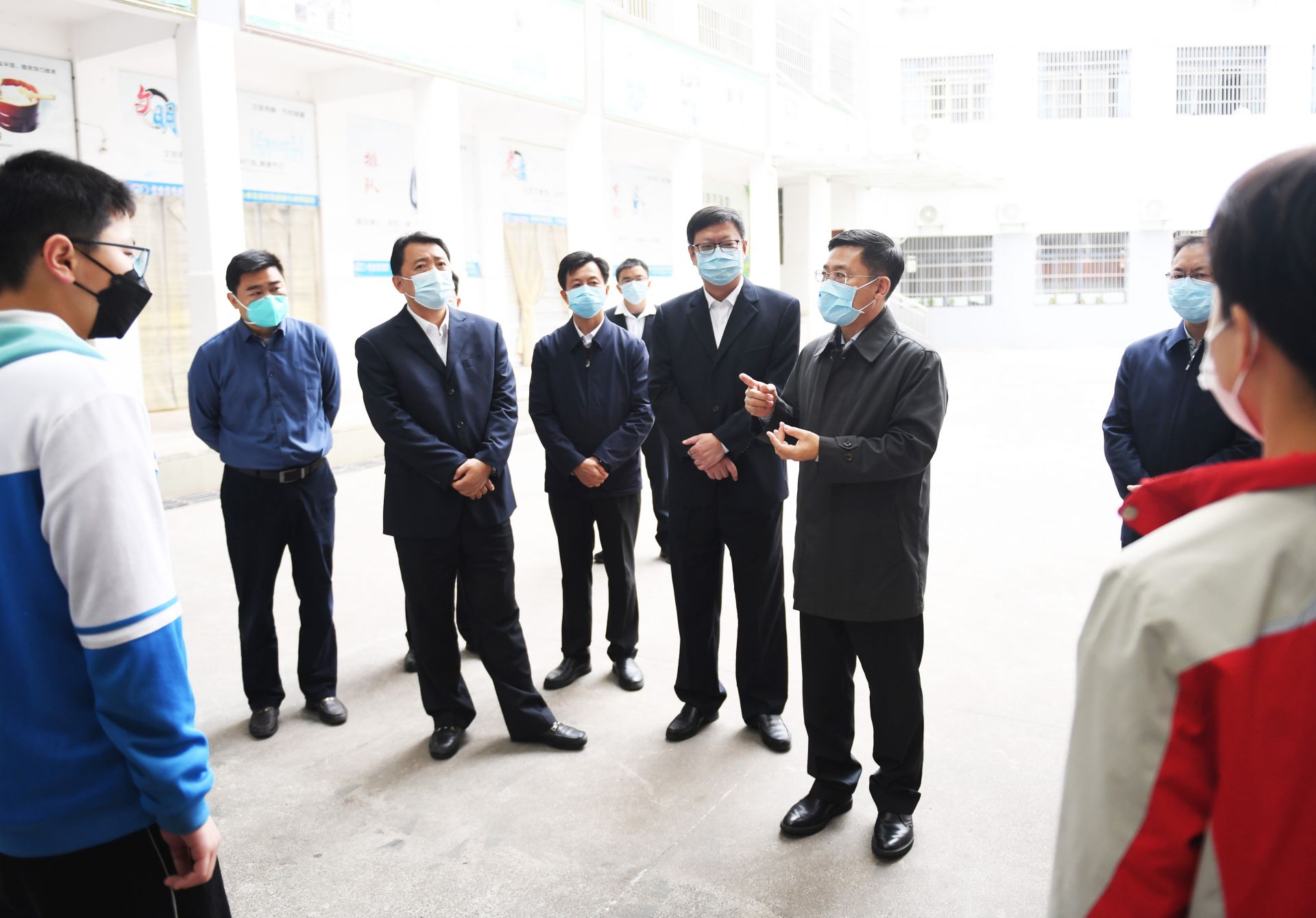 因前期篩查發(fā)現(xiàn)有陽性病例活動軌跡,崇陽縣眾望高中實(shí)行靜默管理,部分師生在校園內(nèi)接受健康監(jiān)測,他們的身體情況、生活保障和心理狀況牽掛著市領(lǐng)導(dǎo)的心。孟祥偉、楊軍來到學(xué)生宿舍樓下,在采取戴口罩、間隔一米等必要防護(hù)措施后,和被監(jiān)測學(xué)生、老師親切交流,詳細(xì)了解監(jiān)測措施落實(shí)、日常飲食及營養(yǎng)保障、心理疏導(dǎo)等情況。