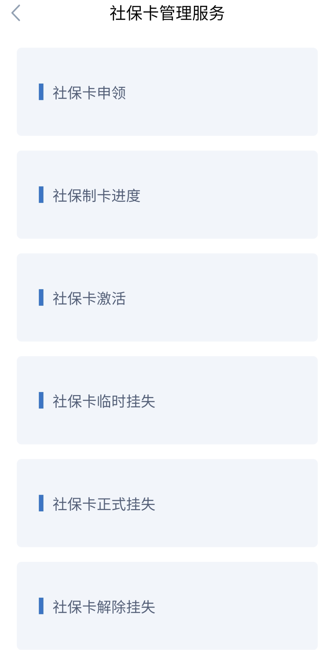 點擊進入“社保卡管理服務”欄目,即可顯示“社??ㄉ觐I”“社保制卡進度”“社保卡激活”“社??ㄅR時掛失”“社??ㄕ綊焓А薄吧绫?ń獬龗焓А钡茸禹棙I(yè)務在線辦理入口。